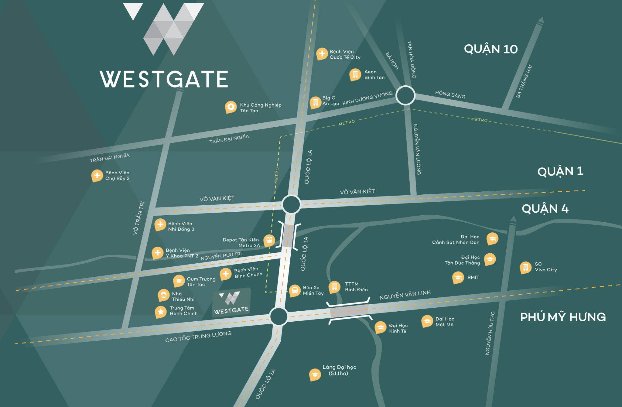 Liền kề Quốc Lộ 1A, kết nối nhanh đến Quận 5, Quận 6, Quận 7, Quận 8 chỉ trong 20 phút.